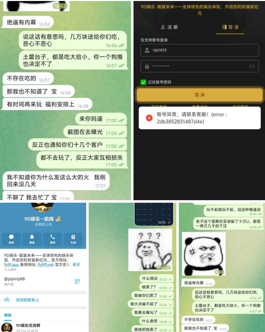 从最初的 “出款中请等待” 到最终直接被踢出聊天群,9D 娱乐将 “黑平台三件套” 玩弄得炉火纯青:删记录、封号、甩锅,最后连客服都集体失踪,令人愤慨。